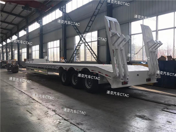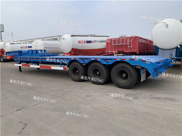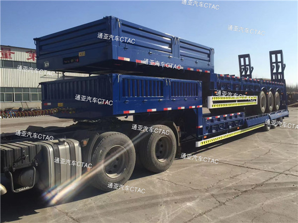 低平板半掛車可運輸大型工程機械設備、集裝箱、木材、散貨等,一車多用深受客戶喜愛。