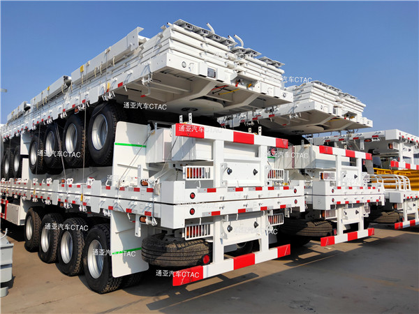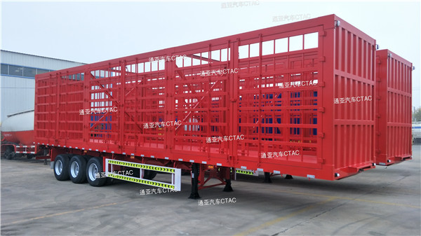 集欄兩用半掛車多為欄板、倉欄樣式帶集裝箱鎖具的出口型多功能半掛車,可運輸集裝箱以及散貨等,一車多用深受客戶喜愛。