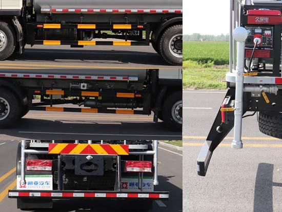 其它 裝備有罐體和噴灑系統(tǒng),用于園林綠化噴灑作業(yè).介質(zhì):丙酮水溶液,罐體總?cè)萘繛?0.3立方米,罐體有效容積為9.8立方米,罐體尺寸(長(zhǎng)×長(zhǎng)軸×短軸)(mm):4700×2100×1400,采用4500mm軸距,選裝罐體尺寸(長(zhǎng)×長(zhǎng)軸×短軸)(mm):4400×2150×1450,采用4200mm軸距;選裝兩側(cè)管箱樣式,選裝霧炮安裝位置及樣式,選裝后部不加裝霧炮裝置,選裝側(cè)面無(wú)裝飾管;側(cè)后防護(hù)裝置材料均為:Q235B,側(cè)后防護(hù)裝置與車架連接方式均為螺栓連接,后防護(hù)裝置截面尺寸為:120×68mm,后防護(hù)裝置離地高度450mm,ABS型號(hào)為CM4XL-4S/4M,生產(chǎn)廠家為廣州瑞立科密汽車電子股份有限公司.
