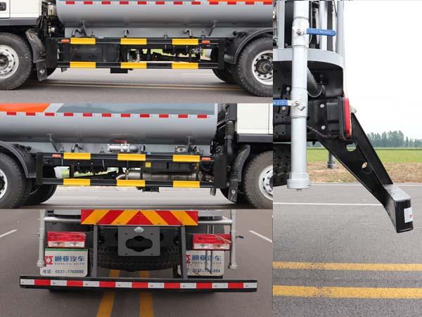 其它 專用裝置為抑塵霧炮,用于城市抑塵.罐體有效容積為9.8立方米,罐體尺寸(長×長軸×短軸)(mm):4700×2100×1400;僅采用4500mm軸距;側后防護裝置材料均為:Q235B,側后防護裝置與車架連接方式均為螺栓連接,后防護裝置截面尺寸為:120×68mm,后防護裝置離地高度450mm,ABS型號為CM4XL-4S/4M,生產廠家為廣州瑞立科密汽車電子股份有限公司.