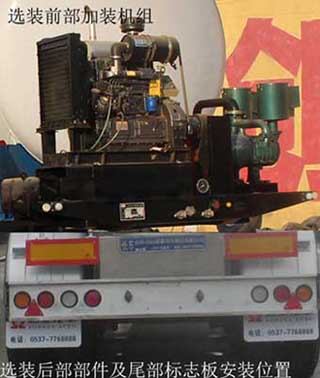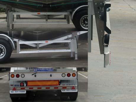 備注 體總容量:36立方米,罐體有效容積:35立方米,運輸介質:粉煤灰,密度:973千克/立方米,罐體尺寸(含封頭)長:8550mm,最大寬度:2530mm,最大截面高度3150mm,前后封頭直徑:2012mm;選裝車輛前部不加裝機組,不帶機組時外形尺寸(mm)為:9150*2550*4000;選裝爬梯的安裝可以是罐體兩側或罐體后部,爬梯個數可以為一個或兩個,選裝輪罩樣式及鋁合金輪轂,選裝罐頂升降護欄,頂部可為擋水槽式也可為走臺式,選裝后部部件結構,工具箱位置可選裝,選裝罐蓋個數及位置,選裝燈具和后燈杠樣式,選裝尾部標志板樣式;ABS系統生產廠家:廣州瑞立科密汽車電子股份有限公司,梁山順安達汽車科技有限公司,山東梁山德爾福汽車科技有限公司,ABS型號:CM2XL-4S/2K(4S/2M),SAD-ABS4S/2M,DEF-ABS4S/3M;側面及后下部防護裝置所用材料材質為:鋁合金,側面及后下部防護裝置與車輛連接方式均為:螺栓連接,后部防護裝置的主要尺寸參數:斷面尺寸(mm)為120×68,離地高度為:500mm.側面及后下部防護裝置所用材料材質為:Q235;罐體頂部封閉不可開槽,后部不可開啟