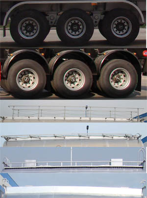 備注 體總容量:40立方米,罐體有效容積:39立方米,運輸介質:粉煤灰、無煙煤粉、輕質水泥,密度:875千克/立方米,罐體尺寸(含封頭)長:9160mm,最大截面寬度:2500mm,最大截面高度3200mm,前后封頭直徑:2050mm;選裝車輛前部不加裝機組,不帶機組時外形尺寸(mm)為:9950*2550*4000.當車長為:10700時,軸距為:5950+1310+1310,5830+1310+1310,后懸為:800;當車長為:9950時,軸距為:5950+1310+1310,5830+1310+1310,后懸為:800;選裝爬梯的安裝可以是罐體兩側或罐體后部,爬梯個數可以為一個或兩個,選裝輪罩樣式及鋁合金輪轂,選裝罐頂升降護欄,頂部可為擋水槽式也可為走臺式,選裝后部部件結構,工具箱位置可選裝,選裝罐蓋個數及位置,選裝尾部標志板樣式;ABS系統生產廠家:廣州瑞立科密汽車電子股份有限公司,梁山順安達汽車科技有限公司,山東梁山德爾福汽車科技有限公司,ABS型號:CM2XL-4S/2K(4S/2M),SAD-ABS4S/2M,DEF-ABS4S/3M;側面及后下部防護裝置所有材料材質:Q235,側后防護與車架連接方式均為:螺栓連接;后部防護裝置的主要尺寸參數:斷面尺寸(mm):120×58,離地高度:500mm.罐體頂部封閉不可開槽,后部不可開啟.
