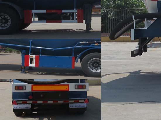 罐體有效容積為:50立方米,運輸介質:粉煤灰,介質堆密度:620千克/立方米,罐體尺寸(不含封頭)長:9300mm,最大寬度:2490mm,最大截面高度:3280mm,最小封頭直徑:2010mm;選裝車輛前部不加裝機組,不帶機組時外形尺寸為(mm):10200×2500×4000,選裝爬梯的安裝個數和位置,輪罩樣式和罐體樣式;選裝大梁后部可以為弧形結構,選裝輪罩樣式及鋁合金輪轂,選裝走臺樣式,選裝罐頂升降護欄,頂部可為擋水槽式也可為走臺式,選裝前后封頭處進氣管位置和個數,工具箱位置可選裝,選裝罐蓋個數及位置,選裝罐體罐道的樣式,選裝大梁可以為鉆孔樣式,選裝左側罐道樣式;車長為10950mm時,軸距為;5430+1310+1310,5200+1310+1310,前懸/后懸:-/1430;車長為10200mm時,軸距為;5430+1310+1310,5200+1310+1310,前懸/后懸:-/1430;ABS系統生產廠家:威伯科汽車控制系統(中國)有限公司和廣州瑞立科密汽車電子股份有限公司,梁山順安達汽車科技有限公司,山東梁山德爾福汽車科技有限公司,型號:4005000810 4S2M和CM2XL-4S/2K(4S/2M),SAD-ABS4S/2M,DEF-ABS4S/3M;側面及后下部防護裝置所用材料材質為:Q235,側面及后下部防護裝置與車輛連接方式均為:螺栓連接或焊接,后部防護裝置的主要尺寸參數:斷面尺寸(mm)為120×68,離地高度為:500mm.頂部封閉不可開槽,后部不可開啟 |