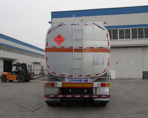 采用具有限速裝置的牽引車且適用于牽引危險品運輸半掛車的牽引車.類項號:3.罐體總容積:39.5立方米,運輸介質:柴油,汽油,介質密度:810千克/立方米,730千克/立方米;罐體外形尺寸為:長10900mm,寬為2480mm,高(后端)為1960mm;選裝空氣懸架;ABS生產廠家:廣州瑞立科密汽車電子股份有限公司,梁山順安達汽車科技有限公司,ABS型號:CM2XL-4S/2M,SAD-ABS4S/2M;側面及后下部防護裝置所有材料材質:Q235,側防護連接方式為:螺栓連接,后防護連接方式為:焊接,后部防護裝置的主要尺寸參數:斷面尺寸(mm):120×68,離地高度:500mm.
