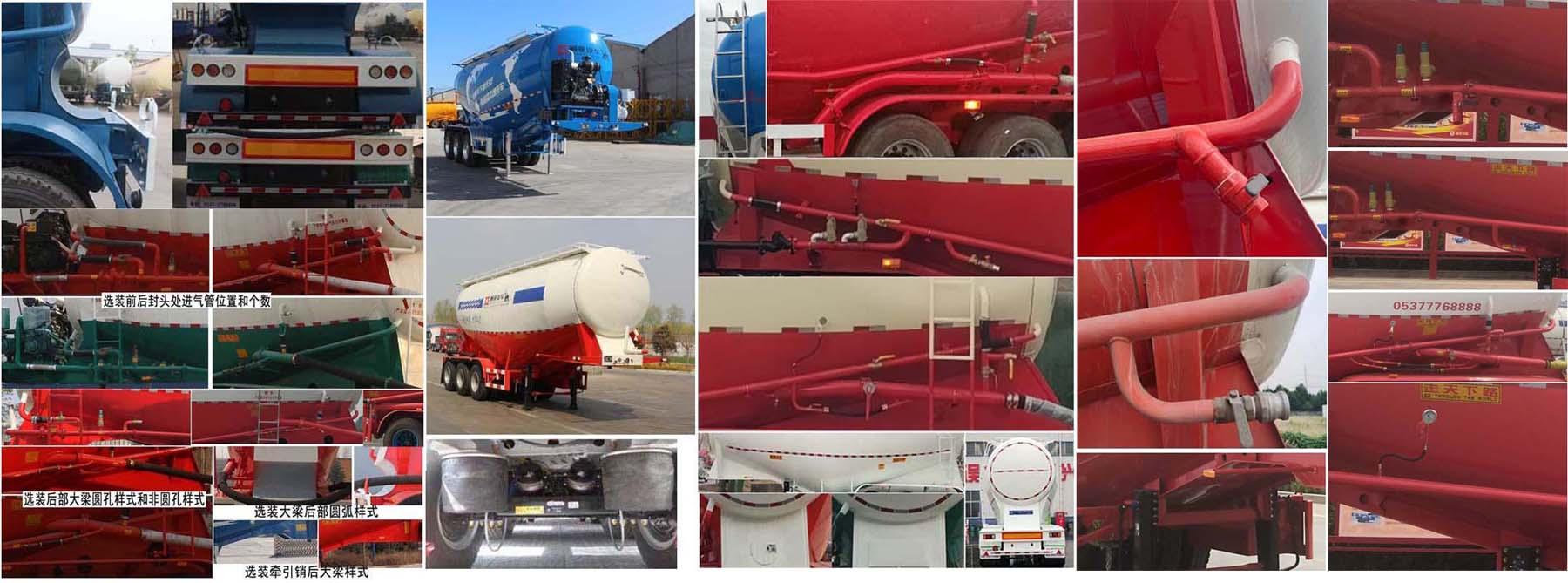 其它 罐體總容量為:27.9立方米,罐體有效容積:26.6立方米,運輸介質為:固井專用水泥(密度1200千克/立方米).罐體外形尺寸為:長(含封頭)8530mm,最大截面處寬度:2520mm,最大截面處高度:3120mm,前后封頭直徑:1810mm,選裝前后封頭直徑為:1910mm;不帶機組時,外形尺寸為(長×寬×高mm):8720×2550×3950,4000,ABS系統生產廠家:廣州瑞立科密汽車電子股份有限公司,梁山順安達汽車科技有限公司,山東梁山德爾福汽車科技有限公司,ABS型號:CM2XL-4S/2K(4S/2M),SAD-ABS4S/2M,DEF-ABS4S/3M;側面及后下部防護裝置所用材料材質均為:Q235,側面及后下部防護裝置與車輛連接方式均為:螺栓連接或焊接,后部防護裝置的主要尺寸參數:斷面尺寸(mm)為120×68,離地高度為:500mm.頂部封閉不可開槽,后部不可開啟.選裝雙助吹樣式,選裝支腿連接件樣式,選裝外接氣源樣式,選裝壓力表安裝位置,選裝大梁后部可以為弧形,選裝燈具型號及后組合燈所在部件的樣式,選裝輪罩樣式及鋁合金輪轂,選裝走臺樣式,選裝罐頂升降護欄,頂部可為擋水槽式也可為走臺式,選裝前后封頭處進氣管位置和個數,工具箱位置可選裝,選裝罐蓋個數及位置,選裝罐體管道的樣式,選裝大梁異形孔樣式,選裝牽引銷后大梁樣式,選裝下出料樣式,選裝爬梯安裝位置(前部/側面/后部),選裝空氣懸架樣式,選裝后尾小工具箱樣式,選裝罐道樣式,選裝機組樣式,選裝尾部標志板安裝位置,選裝號牌板安裝位置,選裝部件位置因為制造誤差可有小變化.