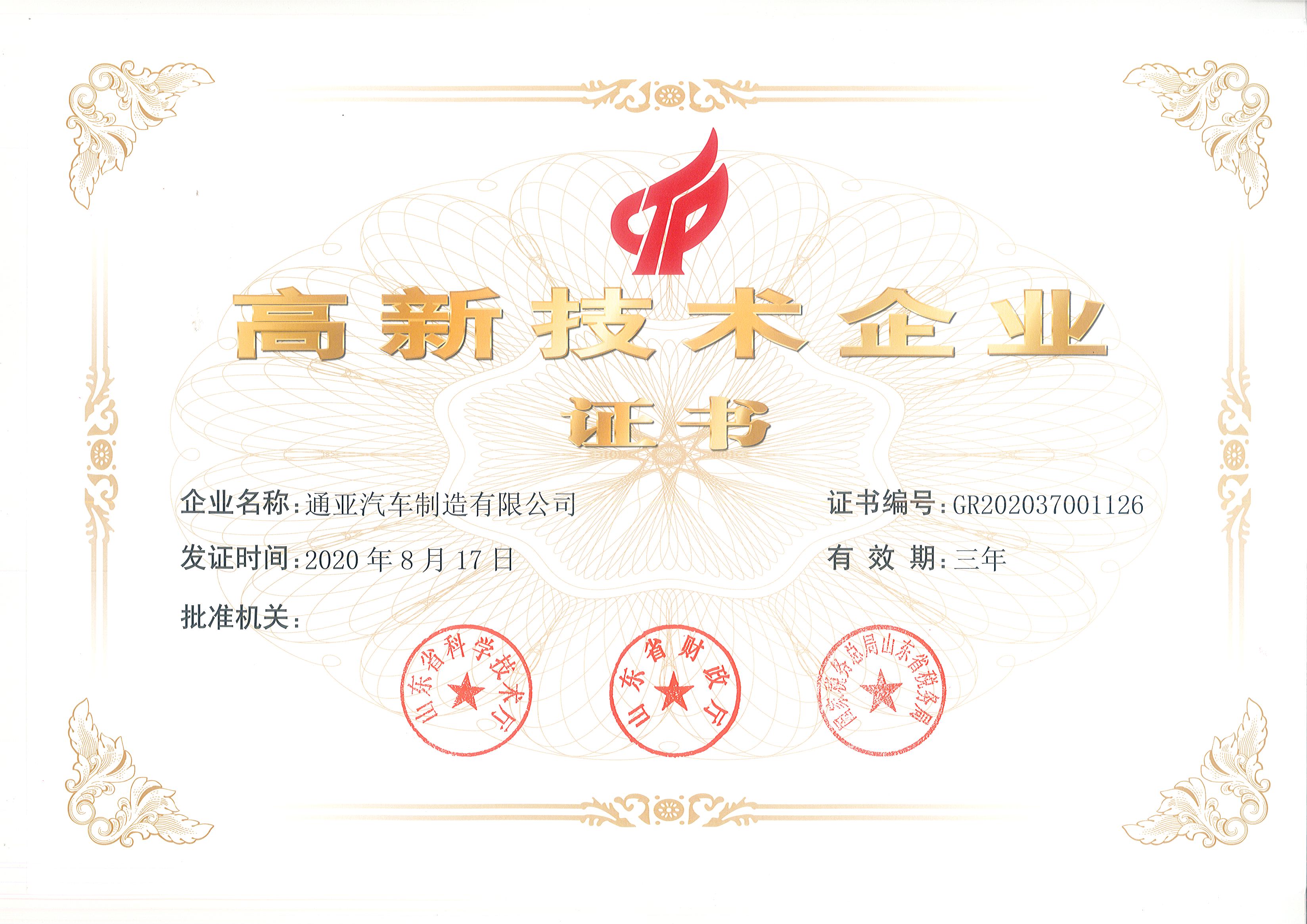 國家級高新企業(yè)證書